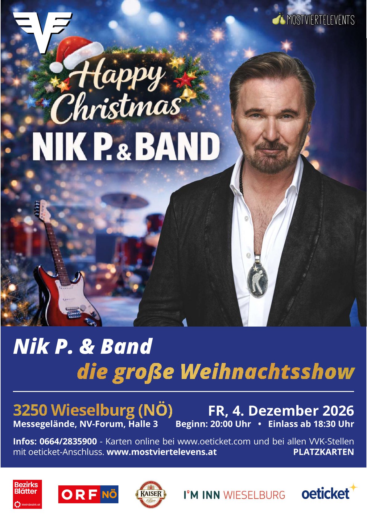 Messe Wieselburg NV-Forum, Neue Halle 3, WieselburgFolgende Künstler sind dabei: Die Grubertaler Brennholz die Band Die Mayrhofner Informationen: Wann: 28. November 2025 Beginn: 19:30 Einlass: ab 18:00 Uhr Wo: 3910 Zwettl (NÖ) Stadthalle, Stadthallenplatz 1 KVV: […]